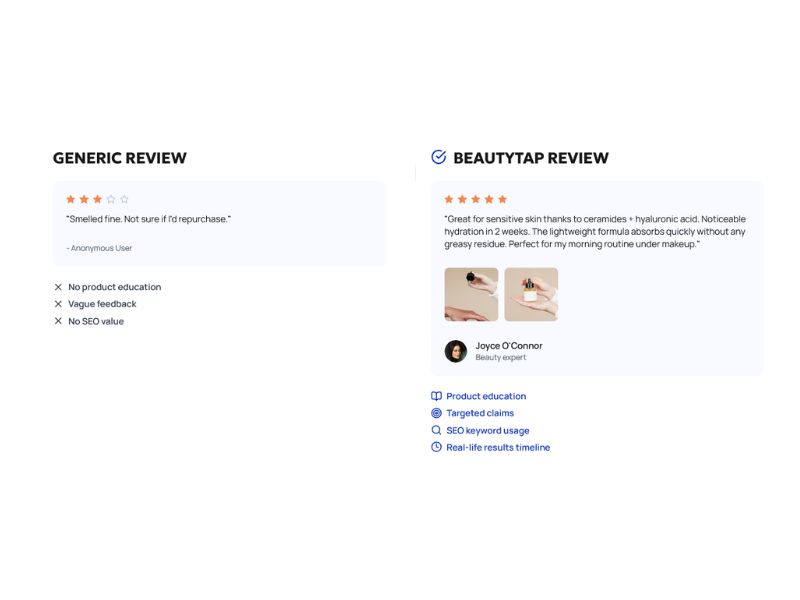 So why do beauty expert reviews outperform standard consumer UGC? It’s not just because of who is writing them. It’s because of how they are trained, structured, and delivered. Expert reviews are designed to inform, guide, and convert. They answer the questions that matter and provide the depth buyers need to feel confident.